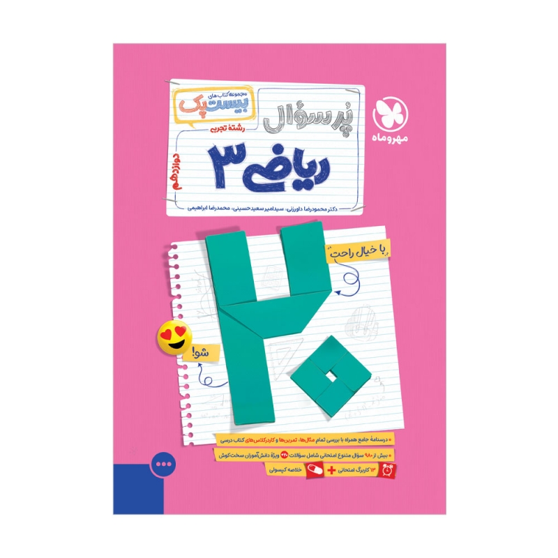 بنابراین پیشنهاد میکنیم پس از مطالعه هر فصل از کتاب پرسوال، امتحان همان فصل را جدا کنید و در شرایط مشابه حوزه امتحانی خودتان را محک بزنید بعد از امتحان نیز با توجه به بارم بندی هر سوال در پاسخ نامه، برگه خود را تصحیح و تحلیل کنید.